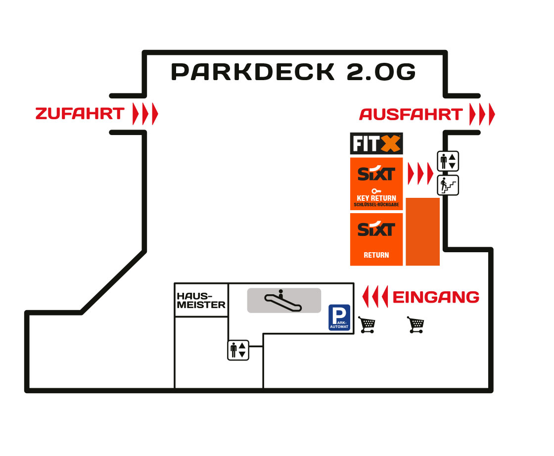 Im Center Am Juliusturm stehen Parkplätze in der Tiefgarage und auf dem Parkdeck im 2. OG in ausreichender Anzahl zur Verfügung. Von dort gelangt man barrierefrei ins Center.